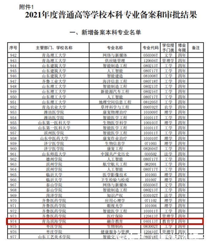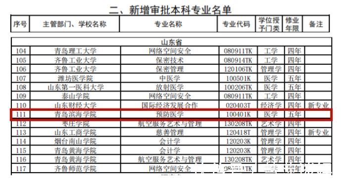 新学期伊始,教育部官网公布了《2021年度普通高等学校本科专业备案和审批结果》,青岛滨海学院新增预防医学(五年制)及融合教育本科专业。新专业将于2022年秋季学期招生。
