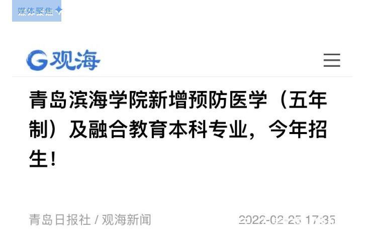 青岛滨海学院新增预防医学(五年制)及融合教育本科专业!